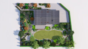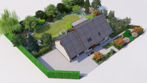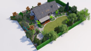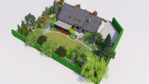 Do kompozycji dodano drzewa, które nie tylko będą wybijać się z niższej roślinności, ale również dawać cień, na którym zależało Inwestorom.
